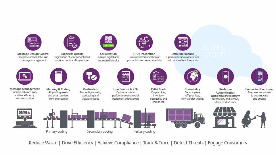Our Packaging Intelligence solutions combine our proven coding and marking expertise with our experience to deliver complete turnkey solutions for achieving the maximum packaging line efficiency, trouble-free data management, and supply chain traceability all the way to the consumer’s hands. CoLOS will significantly enhance your productivity and quality control while also addressing the challenges of waste and costs in an ever-changing manufacturing environment, creating a smarter business.